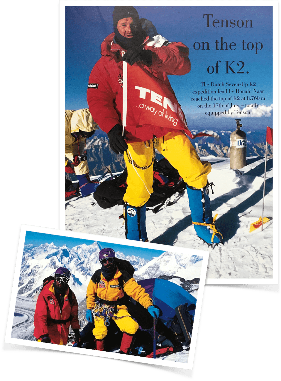 17. července zdolala nizozemská expedice pod vedení Ronalda Naara horu K2, měřící úchvatných 8760 metrů, od hlavy po paty oblečeni do vybavení Tenson. Ronald Naar byl nejznámější nizozemský dobrodruh své doby. Ve své zemi byl první, kdo pokořil tzv. Korunu Planety, skupinu sedmi nejvyšších hor sedmi kontinentů. Pro své výpravy si vybral bundu Tenson Mount Everest.