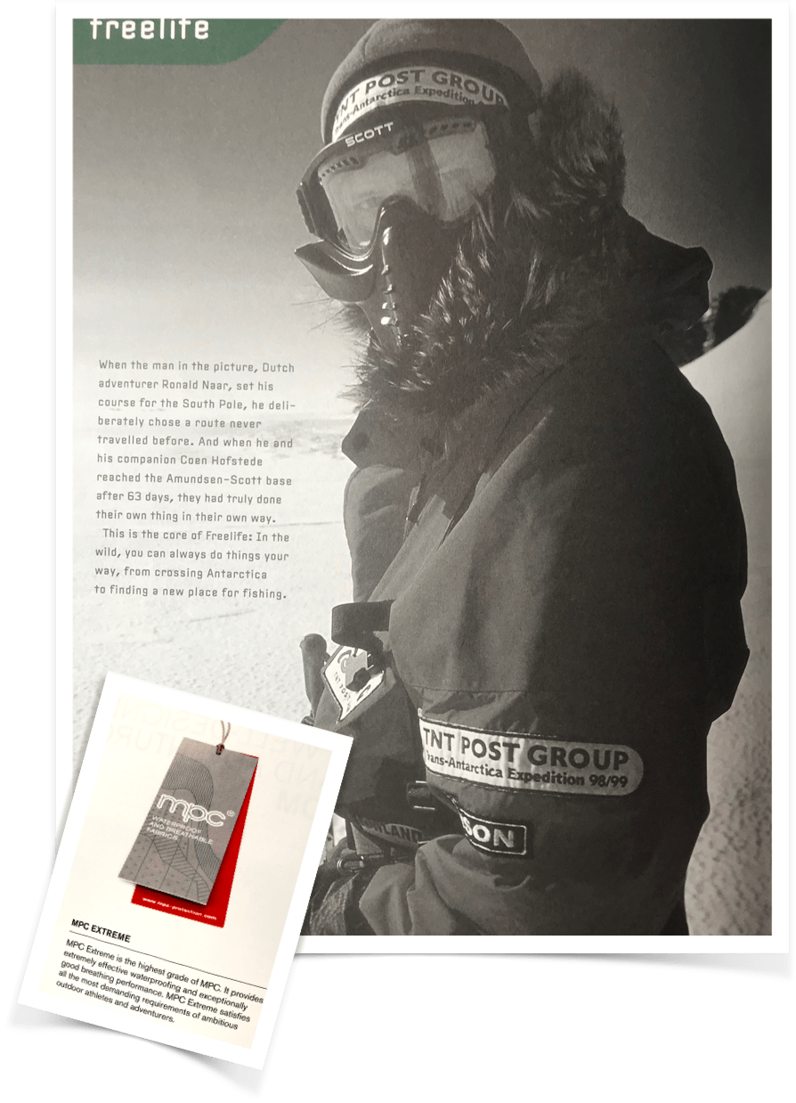 Expedice trvá 38 dní, její členové jsou kvůli velmi chladnému počasí oblečeni v řadách Tenson MPC Extreme a AriPush. Technologie Tenson MPC Extreme s vodním sloupcem 20.000 a prodyšností 20.000 byla představena v roce 1996.