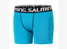 Pánské prodloužené trenýrky Salming Ongoing Extra Long Boxer Cyan Blue jsou vyrobeny z funkčního rychleschnoucího materiálu Coolmax. 4,5 cm široká guma v pase udrží boxerky na svém místě i při těch nejnáročnějších pohybech.