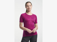Dámské triko z merino vlny Tenson Himalaya Wool Tee ve fialové barvě se stylovým potiskem na hrudi. Vhodné jak do přírody, tak na běžné nošení. Více informací